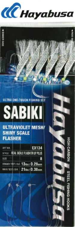The Hayabusa Real Scale Flasher UV Plus EX134 is a premium sabiki rig designed to maximise baitfish attraction across a wide range of conditions. By combining ultra-realistic scale patterns with holographic flash and UV enhancement, this rig delivers multi-dimensional appeal that keeps producing when standard sabikis fall short.